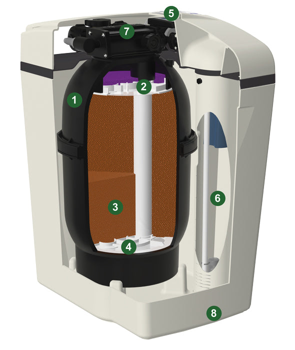 - İyon Değişimli Reçine (28 L) — Ca/Mg iyonlarını sodyum ile değiştirerek suyu yumuşatır.