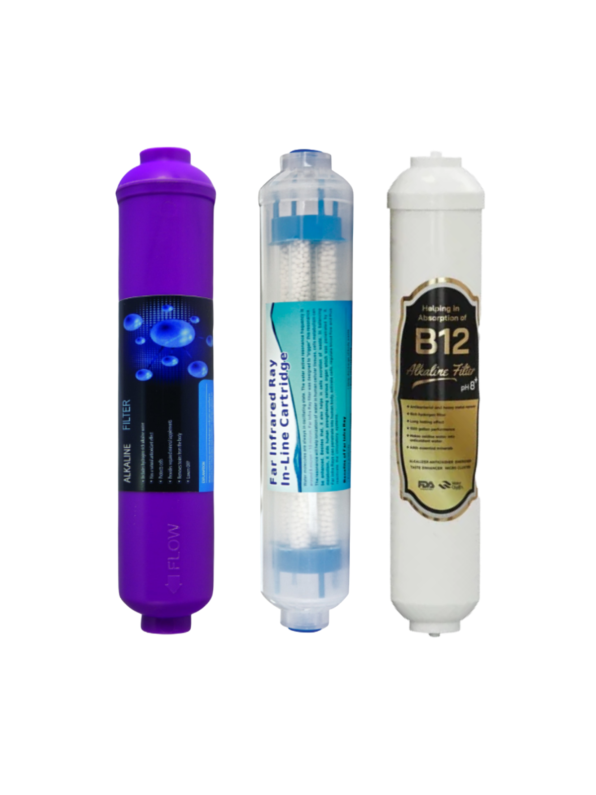 Ters osmoz sonrası arıtılmış suya kalsiyum, magnezyum gib doğal mineralleri geri kazandırarak suyun tadını ve kalitesini artırır Mineral filtreler, Alkalin / Detoks / B12 Vita Mineral seçenekleri.